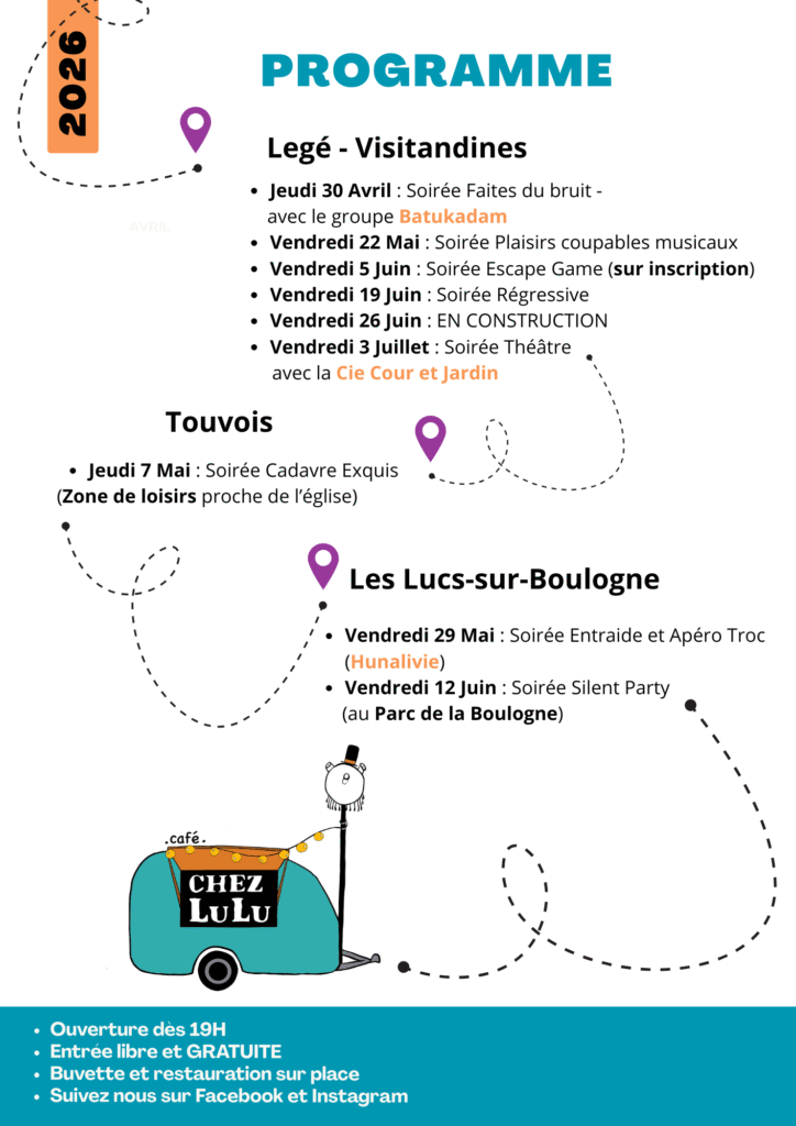 La caravane du café associatif Chez Lulu et toute l’équipe revient pour cette saison 2026, haute en couleurs. Au programme de la musique, de la danse, du théâtre, des jeux, mais surtout de la bonne humeur et de belles rencontres, pour faire vivre Legé !